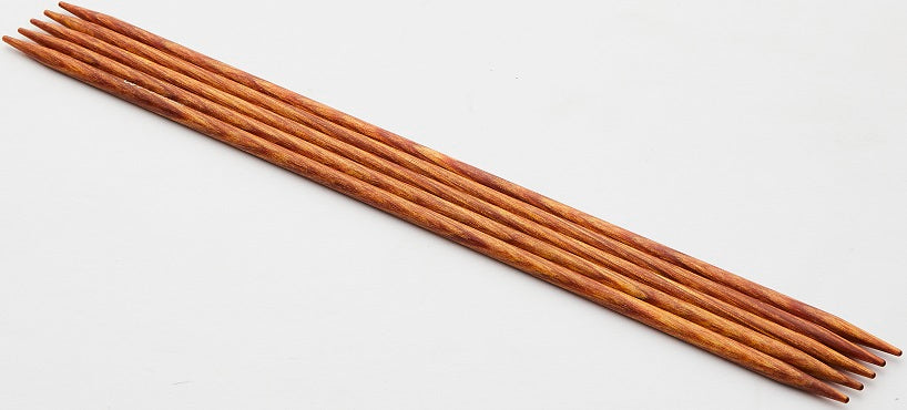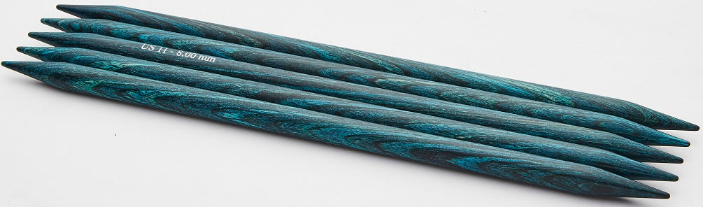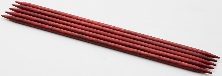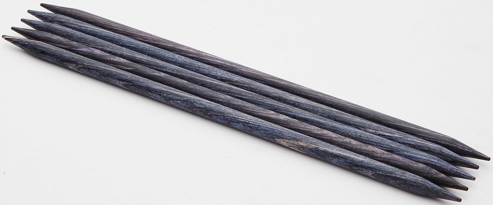 6" double points set. Range of radiant colors allows mix-n-match & organizational options. Perfect points, flawlessly tapered - ideal for all yarns and every project. Lightweight, strong & flexible. Polished wood surface works effortlessly with every type of yarn. Warm to the touch, and gentle in the hand. The knitter's favorite needle: Providing hours of pleasurable knitting with no hand fatigue.