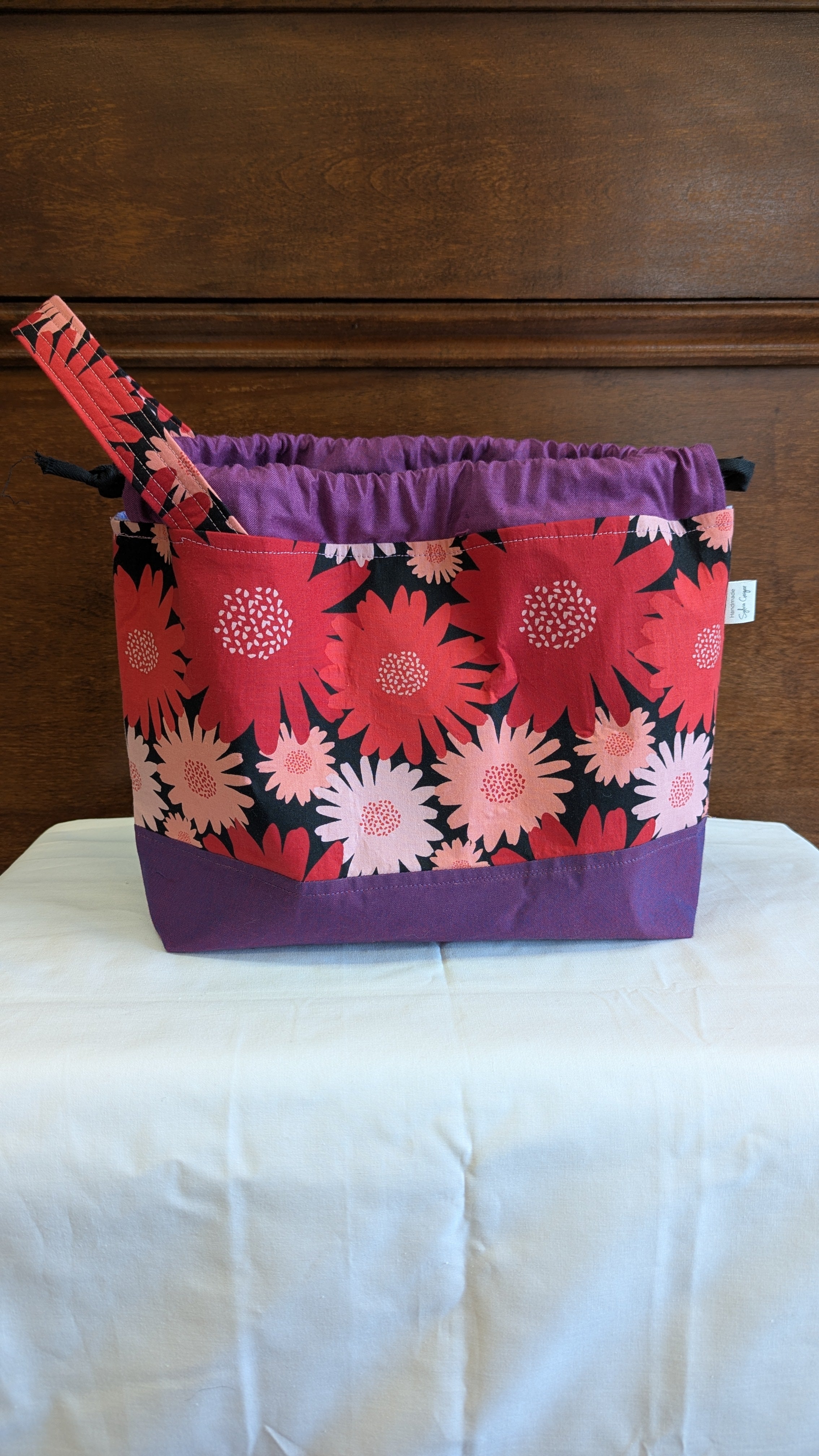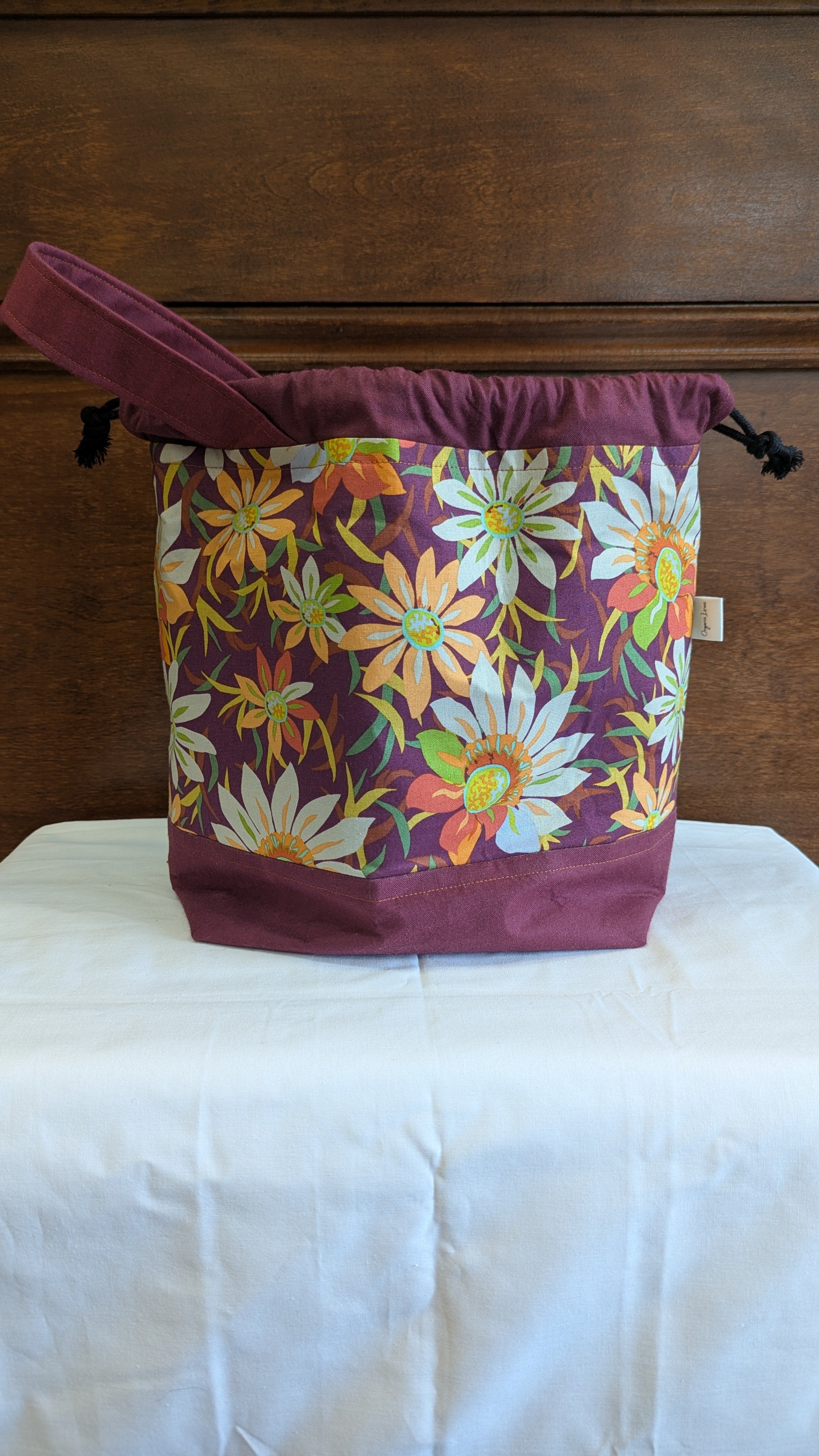 Floral fabric with unique trim and lining for each bag. Hand sewn in Vermont by Sylvia Geiger.