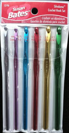 Susan Bates Silvalume Crochet Hook Set made of lightweight aluminum, each Silvalume hook undergoes a special anodizing process, which etches away all surface impurities. In addition, each hook is heat treated for strength and durability and polished for a velvety smooth finish. Each size is color coded so you can find the size you need at a glance. Our famous in line head helps reduce wrist motion for fatigue free crocheting and helps you maintain a more consistent gauge. 1 each sizes F, G, H, I, J, and K.